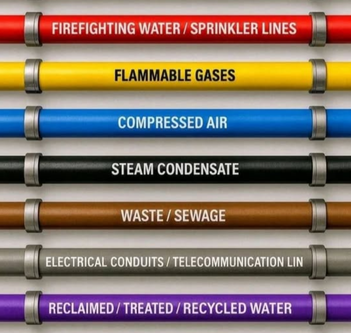 These markings help technicians immediately understand the function of each pipeline within a complex utility network.